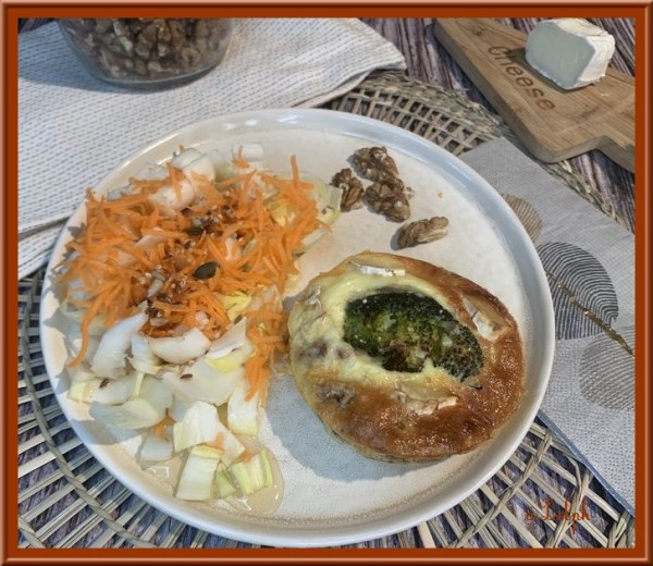 Clafoutis aux champignons, brocoli, noix et fromage de chèvre