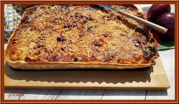 Tarte aux poivrons, oignons rouges et chorizo
