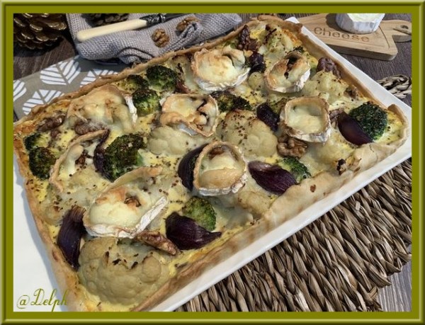 Tarte aux chou-fleur, brocoli et oignon rouge