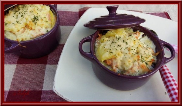 Une recette que nous avons très appréciée, je l'ai trouvée dans le livre" Gratins" que ma copine Zabou m'a offert. Merci Zabou, je partage la recette car c'est un petit régal. Ingrédients : ( pour 6 cocottes ) 200 g de saumon frais750 g de pommes de terreaneth4 oignons nouveaux2 c à s d'huile d'olive20... Lire la Suite →