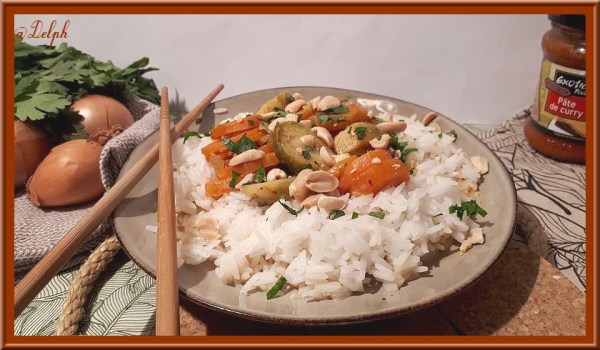 Curry rouge de légumes, cacahuètes et riz basmati