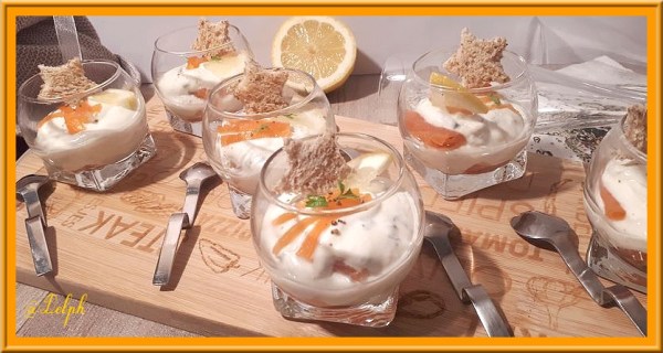 Avec un reste de saumon j'ai fait ces petites verrines, elles sont bien fraîches, c'est très agréable à déguster pour un apéritif. Ingrédients : Pour 6 verrines apéritives de 12 cl 4 tranches de saumon fumé100 g de fromage blanc100 g de mascarpone1 c à s de jus de citron1 c à s de ciboulette... Lire la Suite →