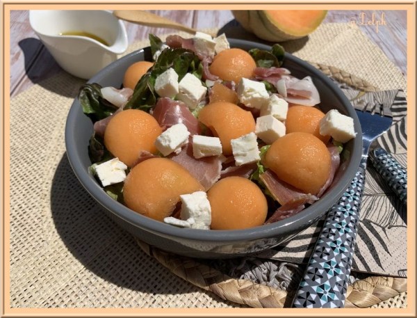 Salade feta jambon cru et melon