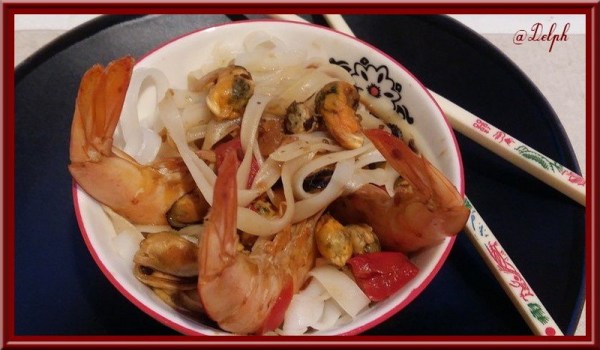 Pour le défi organisé par recette de sur les pâtes, j'ai participé avec plaisir car nous sommes tous fans de pâtes à la maison et j'ai choisi d'ajouter une touche d'exotisme en utilisant des nouilles de riz. Ingrédients : 16 Gambas crues500 g de moules1 sachet de 200 g de nouilles de riz de mon partenaire Ayam1 poivron... Lire la Suite →