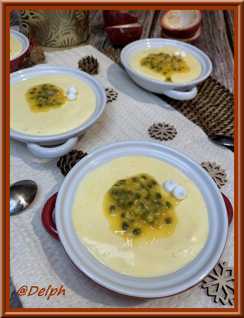 Voici une délicieuse mousse fraîche et légère, nous l'avons beaucoup appréciée. Vous pourrez la déguster avec des petits sablés à la semoule et vanille. Ingrédients : Pour 4 ramequins 2 feuilles de gélatine alimentaire 7 fruits de la passion 50 g d'eau 200 g de crème liquide entière 50 g de sucre glace 1 c... Lire la Suite →