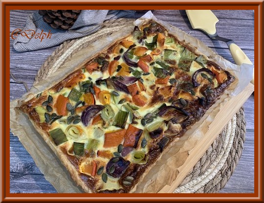 Voici une délicieuse tarte qui change un peu. Elle est végétarienne mais vous pourrez ajouter des dés de poulet, ou jambon pour ceux qui souhaitent un peu de viande. C'est une nouvelle recette avec les potimarrons de mon potager. Ingrédients : Pour un moule de 20 cm X 29 cm 1 pâte feuilletée 400 g... Lire la Suite →