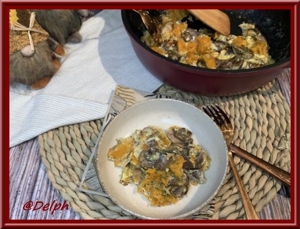 Gratin de potimarron, pommes de terre, chorizo à la crème de coco