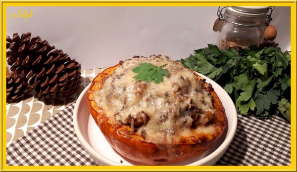 Potimarrons farcis aux champignons, marron et bœuf haché