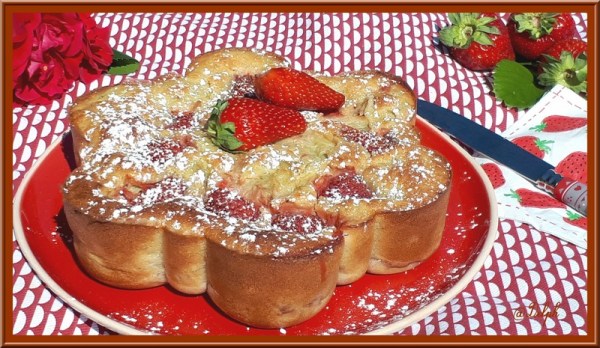 C'est mon amie Martine du blog Kilomètre 0 qui m'a donné envie de réaliser ce délicieux gâteau..J'adore l’association fraises et rhubarbe, alors je profite de la saison pour me régaler avec ces bons fruits gorgés de vitamines. C'est une recette qui voyage car Martine l'avait déjà trouvée chez les mets tissés. Ingrédients : Pour un... Lire la Suite →