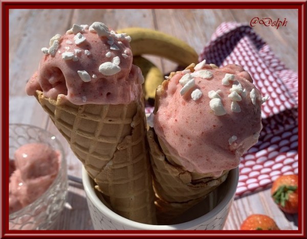 J'avais déjà réalisé un sorbet framboises et bananes avec lequel nous nous étions régalés. Alors j'ai réitéré avec des fraises. J'ai utilisé mes cornets de prêt à garnir, ils sont vraiment bien croustillants. Ingrédients : 225 g de fraises 2 bananes 1 c à c d'extrait de vanille Cônes pâtissier prêt à garnir Crumble de meringue... Lire la Suite →