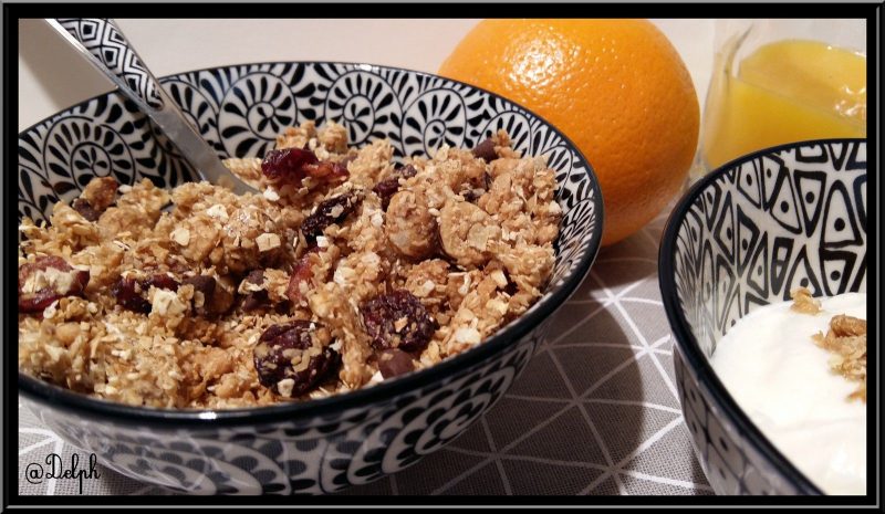 Barre de céréales au chocolat blanc, cranberries et sirop d’érable