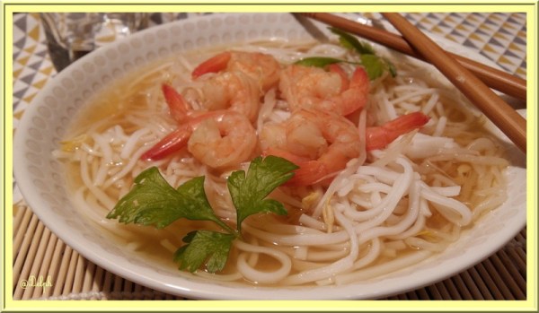 J'ai testé la soupe Pho que mon partenaire Ayam, m'avait gentiment fait parvenir.Rapide, simple, goûteux, c'est un beau voyage au Vietnam. Ingrédients : 185 g de préparation de soupe PHO1,1 litre d'eau300 g de crevettes cruesNouille de rizPousse de haricot mungo Préparation Faire bouillir votre eau dans une casserole, ajouter la préparation et les crevettes puis... Lire la Suite →
