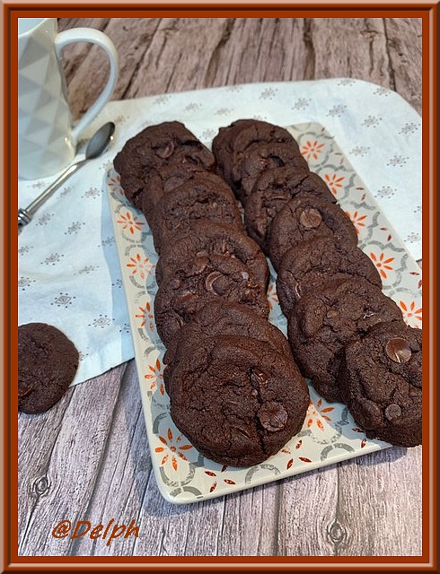 Et une nouvelle tournée de cookies..Mais ceux-là sont incroyablement gourmands et ultra chocolaté..On a envie que le goûter dure une éternité.... Ingrédients : Pour 16 beaux cookies 220 g de chocolat noir à pâtisser Caraïbe de Valrhona à 66% 200 g de chocolat noir à pâtisser Caraïbe de Valrhona à 66% 45 g de beurre... Lire la Suite →