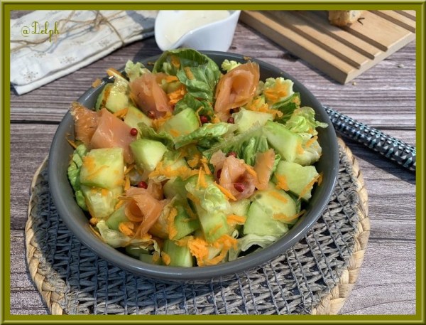 Salade de concombre et saumon fumé à la sauce skyr