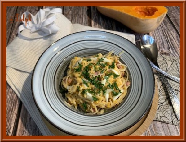 Je crois que je ne vous ai pas encore proposé de recette avec ma courge préférée et voilà c'est chose faite. Des pâtes bien crémeuses au bon goût de Butternut, avec des lardons de bacon pour avoir une assiette équilibrée, et le tour est joué. Ingrédients : Pour 2 personnes 1/2 courge Butternut 2 gousses... Lire la Suite →