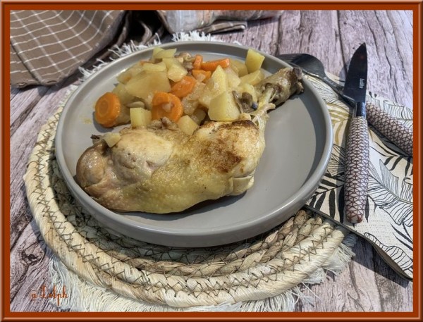 Une nouvelle recette très facile à exécuter, avec des légumes de saison. Cette recette est réalisée avec le Cookéo mais vous pourrez le faire avec une cocotte traditionnelle. Ingrédients : Pour 4 personnes 5 cuisses de poulet1 oignon1/2 c à s de graisse de canard5 gros champignons bruns2 belles carottes5 grosses pommes de terre1 c... Lire la Suite →
