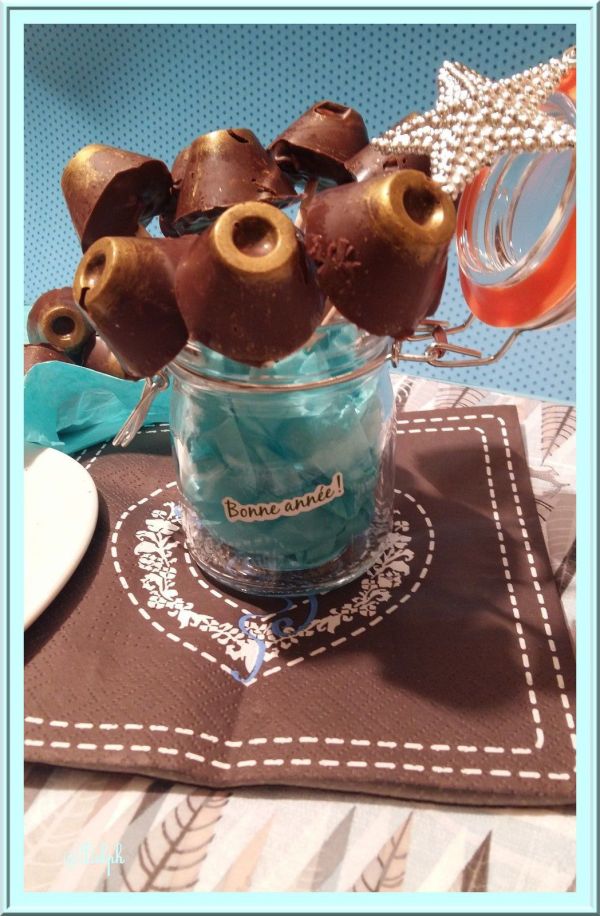 Voici de délicieux chocolats que j'ai piochés chez Boomy. Merci Sonia j'ai pu faire des petits pochettes cadeaux pour offrir ces gourmandises à mes amis. Ingrédients : (Pour une vingtaine de petits chocolats) 70 g d’amandes en bâtonnets ou effilées125 g de chocolat à 50%125 g de pralinoise (marque Nestlé pour moi) Pour la décoration,... Lire la Suite →