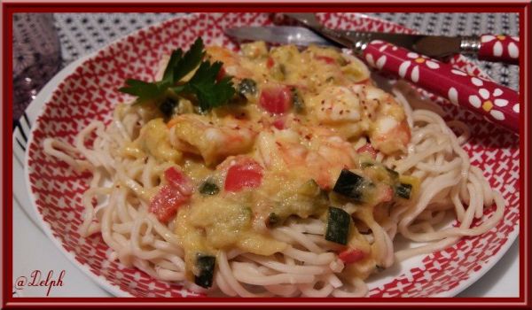 Nouilles japonaises aux gambas pimentées et mascarpone