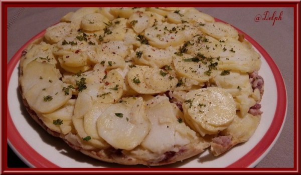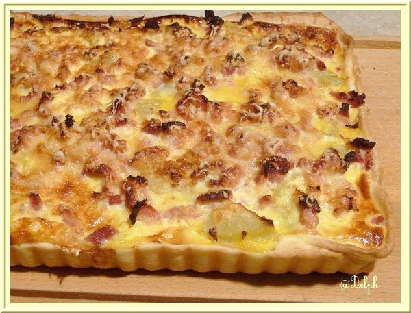 Tarte aux pommes de terre, oignon et lardons fumés
