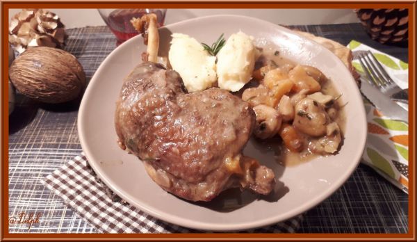 Cuisses de pintade aux marrons, abricots et romarin