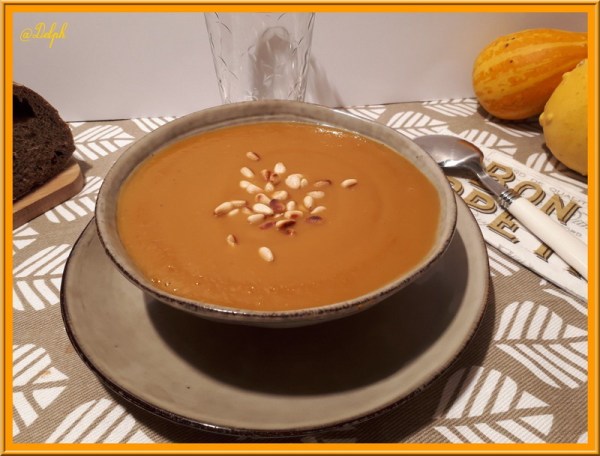 Velouté de potimarron et marrons au cumin