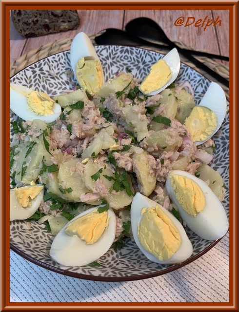 Après avoir fait une raclette, il me restait des pommes de terre cuites. Je les ai donc utilisées dans cette salade pour me repas du midi. Ingrédients : Pour 2 personnes 350 g de pommes de terre cuites 2 échalotes 2 œufs durs 1 boite de thon au naturel 140 g égoutté 4 tiges de... Lire la Suite →