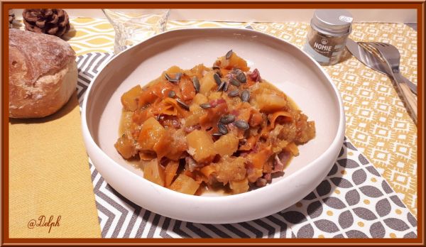 La saison des courges est ouverte, alors je me fais plaisir avec une bonne butternut, j'adore son petit goût. Si vous souhaitez une assiette végétarienne il vous suffira de ne pas mettre la pancetta. J'ai gagné beaucoup de temps avec le Cookéo mais je vous mets aussi la recette avec le wok. Ingrédients : 1... Lire la Suite →
