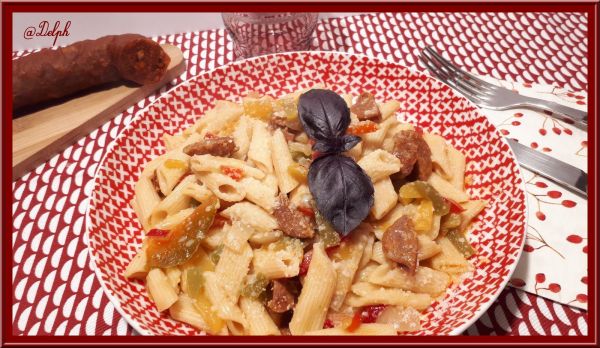 One pot pasta aux saucisses sauce aux poivrons au Cookéo