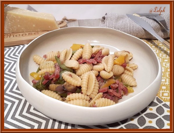 Coquillettes aux poireaux, et jambon râpé fumé au Cookéo