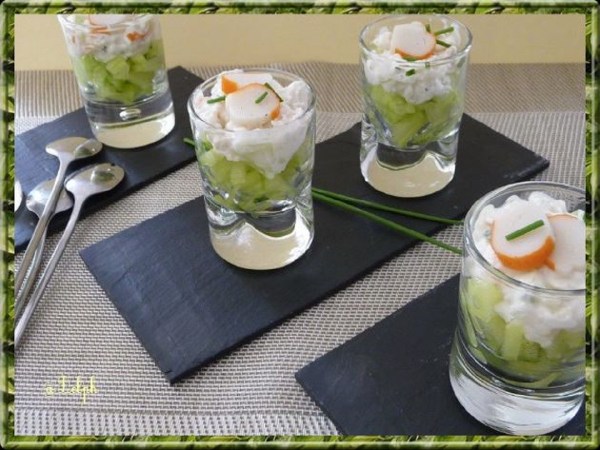 Verrines de surimi au concombre