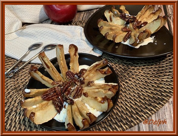Un petit dessert qui nous a beaucoup plus. Avec cette découpe on dirait des soleils, c'est le même procédé que les pommes au four sauf que celles-ci sont coupées en quartiers. Avec les noix de pécan cela apporte du croquant, qui est très agréable. Ingrédients : 2 pommes 40 g de beurre salé, ramolli 2... Lire la Suite →