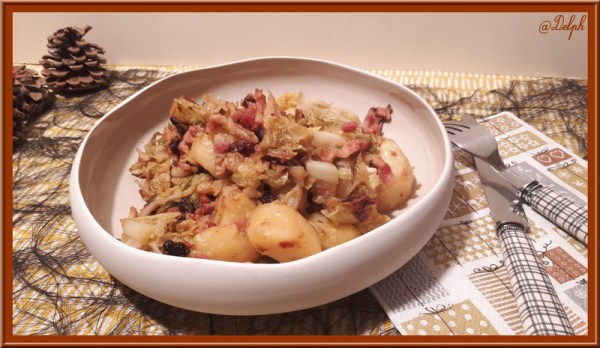 Et voici une petite poêlée très réconfortante. J'ai utilisé mes dernières épices achetées, le mélange du Trappeur qui vient du Canada, c'est un mélange sucré salé qui s'accorde très bien avec le chou je trouve. Ingrédients : (Pour 3 personnes) 3 oignons moyenshuile d'oliveun dizaine de pommes de terre moyenne400 g de poitrine fumée détaillée... Lire la Suite →