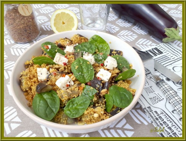 Suite à ma recette d'aubergines farcies aux céréales, j'ai eu envie de me faire une salade froide. Je m'étais tellement régalée que je me doutais que ce mélange de saveurs allait me plaire..Et bien je ne regrette pas, et en plus c'est d'une simplicité déconcertante c'est parfait pour moi.Si vous n'avez pas ces céréales il... Lire la Suite →