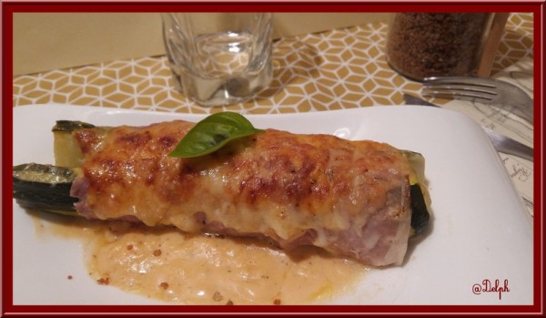 Je me suis inspirée d'une recette trouvée sur le site de Foodies, publié par notre grand cuisinier Jeanmerode. C'est extra, assez rapide à réaliser et bon. Ingrédients : ( Pour 4 personnes ) 4 courgettes moyennes4 tranches de jambon a l'os12 tranches de bacon12 tomates cerises allongéesComté râpé Pour la sauce Aurore : 40 g... Lire la Suite →
